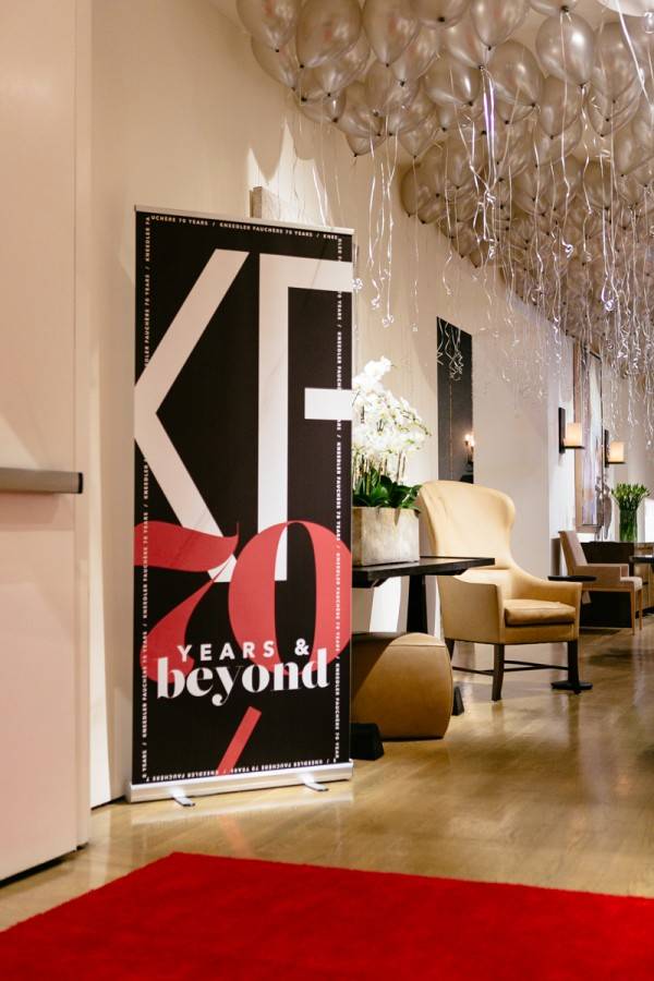 In 1948, Dorothy Kneedler and Lucienne Fauchère opened the first Kneedler Fauchère showroom in the Marine’s Memorial arcade in San Francisco. On September 12th, KF’s San Francisco showroom rolled out the red carpet for friends and family to join together in celebrating 70 incredible years as a driving force in the interior design industry. Partygoers enjoyed cake, signature cocktails, and a step-and-repeat style photo booth, as a video documenting the history of the company (featured below) played on a wall in the main gallery. The evening was capped with a rousing toast by Kneedler Fauchère President